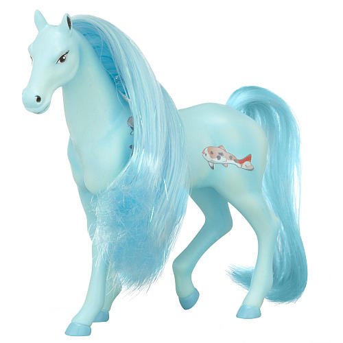 Lien travels on land in the shape of a horse made of water. Sometimes little minnows and tadpoles get caught inside Lien and then they go on unexpected journeys over land.