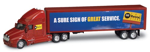 Features: Authentic Kenworth cab design; All wheels roll and tires have authentic tread design; Rear trailer door opens and closes; and Trailer can be unhitched.