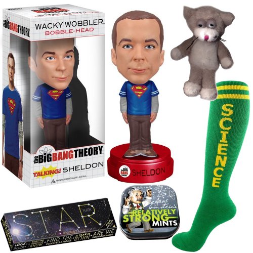 Sheldon says "Bazinga!", "Penny. Penny. Penny.", "I'm not crazy. My mother had me tested.", "Was that sarcasm?" & "You're in my spot.". Science socks are a unisex design that fits most - women's shoe size 7 - men's 13. Star Bar - Fruit & Nut Bar, also featuring astronomy facts, games, and quizzes! Relatively Strong Mints: 70 mints in a pocket-sized, collectible tin. 4" Schrödinger's Cat Finger Puppet & Fridge Magnet
