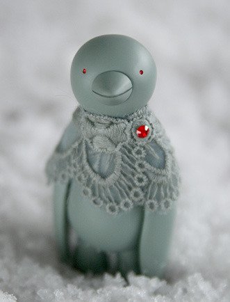 This s The Noel Ji Ja Bird Art Toy Figure by artist Mr. Clement. Figure comes with a handmade scarf and a red Swarovski crystal. Stands over 3" tall and is limited to only 100 pieces worldwide!!